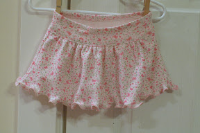 Last night, I was working on a little skirt for Molly from some knit I found at JoAnn’s a while back. When I realized it was going to be too short for her I decided to see if I could do a lettuce edge on a regular sewing machine rather than a folded hem. I found this tip in a Google search and it worked really well on a scrap of the fabric so I decided to go for it!